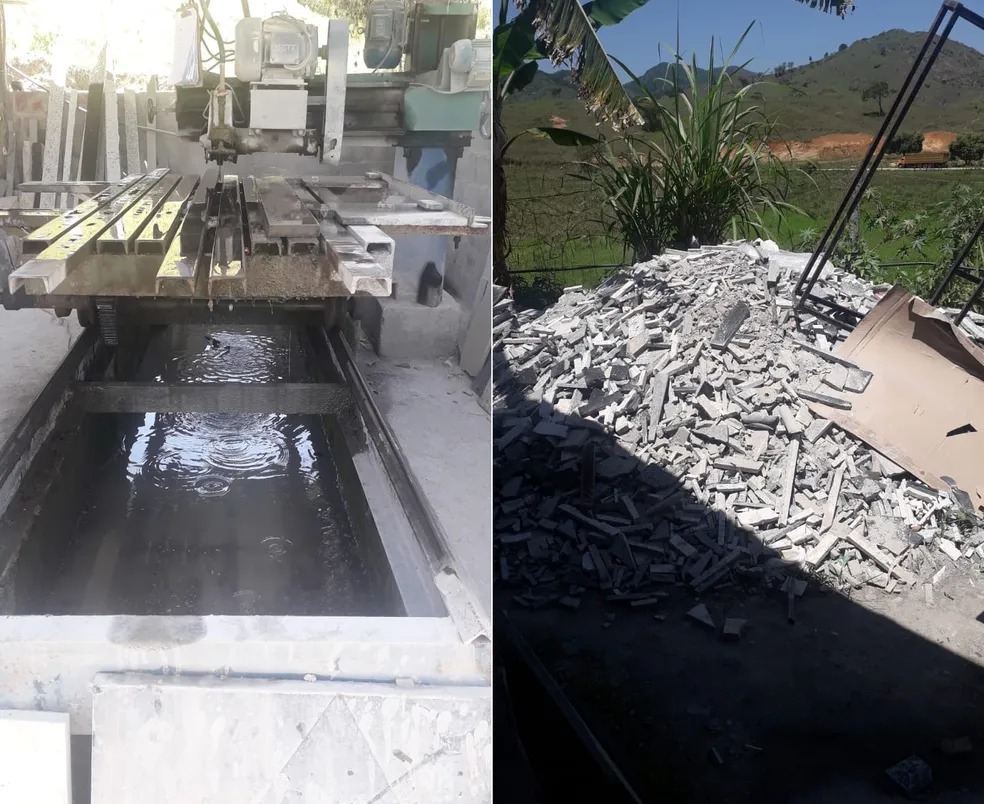 “No caso da marmoraria, envolve questões sobre o restante de pedra do corte, a poeira e pó eliminados durante o processo de corte e designer do mármore. Envolve também os resíduos químicos que saem desse trabalho e que em uma das fotos dá pra ver que eram despejados irregularmente. Envolve ainda o local onde foi retirado que deve ter nota fiscal, se tinha licença pra extrair pedra. Então é importante estar atento a resíduos desejados, descarte do restante de matérias de forma correta e a possível contaminação da população por conta do ar, por conta da poeira que é criada devido ao corte do mármore”, esclareceu a Polícia Ambiental Militar.