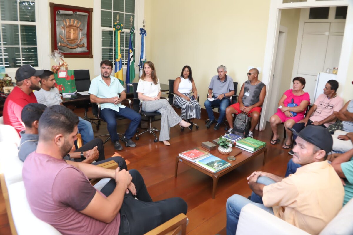 No gabinete, a prefeita Fátima Pacheco e o vice-prefeito Marcelo Batista, juntamente com o secretário de Agricultura, Meio Ambiente e Pesca, Luiz Carlos Fonseca, e o coordenador de Pesca, Ney Aleixo, receberam o grupo de pescadores.