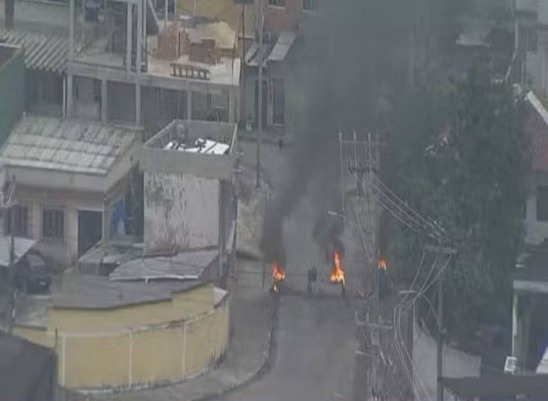 Ao chegar à comunidade, policiais encontraram barricadas em chamas em algumas ruas. Bandidos costumam usar esses bloqueios para atrapalhar a circulação dos agentes durante operações.