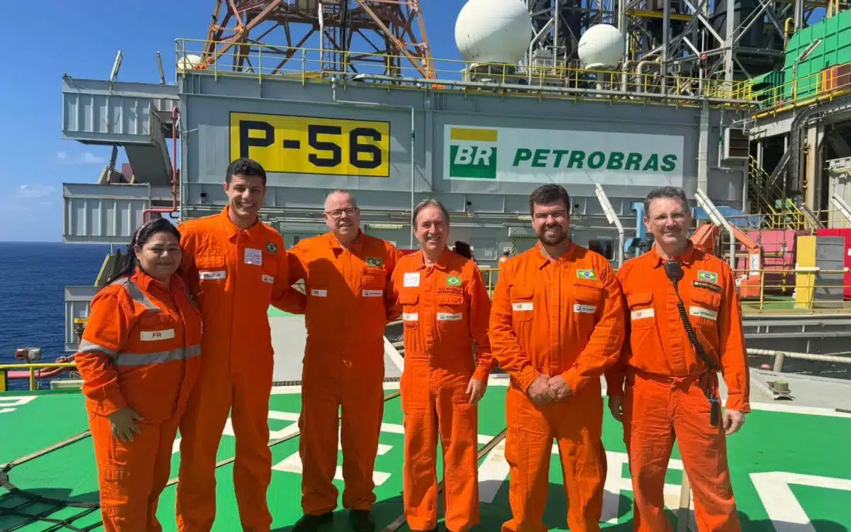 A visita a P-56 também contou com a participação de autoridades municipais, como o vereador Luciano Diniz e o delegado titular da 123ª Delegacia de Polícia de Macaé, Pedro Emílio Braga.
