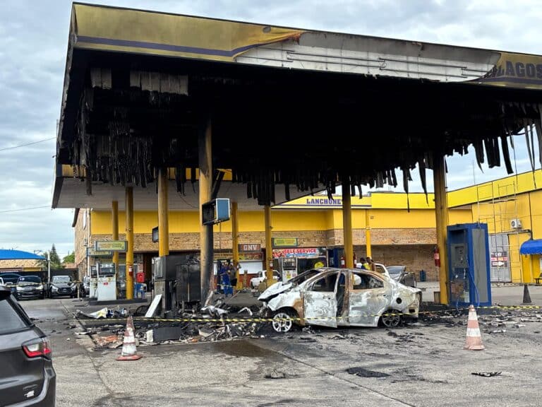 Imagens e vídeos compartilhados nas redes sociais mostram os danos causados. As chamas destruíram completamente o posto de combustíveis, assim como o veículo envolvido na colisão.