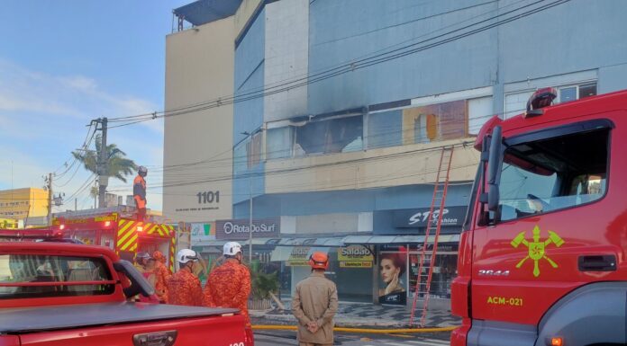 A Polícia Civil divulgou nesta quarta-feira (5) as imagens do circuito interno de segurança shopping, que mostram o momento exato em que a suspeita chega ao segundo piso, entra na loja e depois põe fogo no estabelecimento.