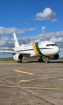 O avião presidencial Airbus A319CJ, também conhecido como “Aerolula”, pousou no Aeroporto Bartolomeu Lisandro, na última sexta-feira (11).