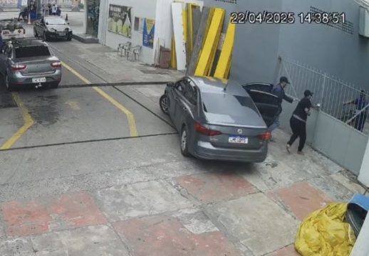 As câmeras do estabelecimento gravaram a ação dos criminosos. Às 14h38 um carro estaciona no posto. Dois assaltantes armados descem e rendem os funcionários. Dois minutos depois, os homens entraram no veículo, que ficou o tempo todo no mesmo local à espera da dupla. Às 14h40 os assaltantes fogem.