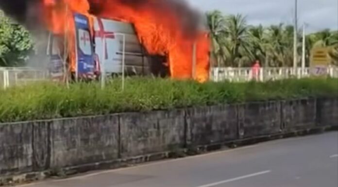 Imagens divulgadas nas redes sociais mostram o veículo sendo completamente destruído pelas chamas. O Corpo de Bombeiros foi acionado, controlou o incêndio e evitou que o fogo se alastrasse.
