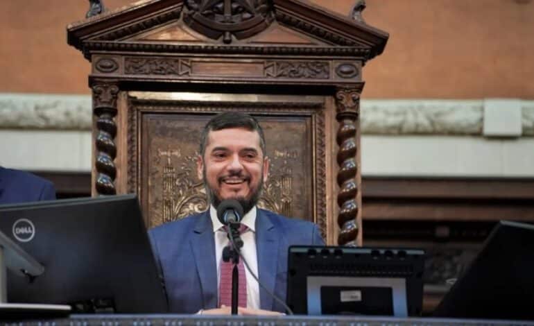 O governador do RJ, Cláudio Castro (PL), enviou à Assembleia Legislativa do Rio (Alerj) a indicação do vice-governador Thiago Pampolha (MDB) para o cargo de conselheiro do Tribunal de Contas do Estado (TCE), nesta segunda-feira (19). Caso a nomeação seja aprovada na Alerj, Pampolha precisará renunciar ao cargo no governo, fazendo com que o atual presidente do órgão, Rodrigo Bacellar (União), passe a ser o primeiro na linha sucessória de Castro.