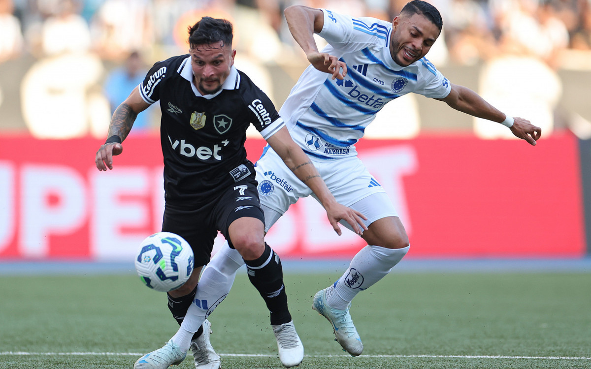 Na reta final do primeiro tempo, o Botafogo comandava mais as ações. O Cruzeiro já não marcava tão alto, mas fechava bem os espaços. Mesmo assim, aos 31 minutos, Artur caiu na área após dividida com Romero, e o árbitro marcou pênalti. Porém, mudou a decisão após revisar o lance no VAR.