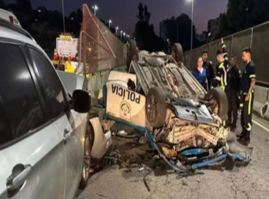 Uma viatura da Polícia Militar foi atingida por um carro em alta velocidade na Avenida Governador Carlos Lacerda (Linha Amarela), na altura do Méier, na madrugada deste sábado (24). O veículo da PM, um Toyota Corolla, estava parado na saída 02 da via, no sentido Fundão, quando, por volta das 5h30, uma BMW prata colidiu fortemente contra o carro oficial. Com o choque, a viatura foi arremessada e caiu capotada. Dois agentes, cabos do 3º Batalhão (Méier) e que atuam na Unidade de Polícia Pacificadora (UPP) do Jacaré, esta